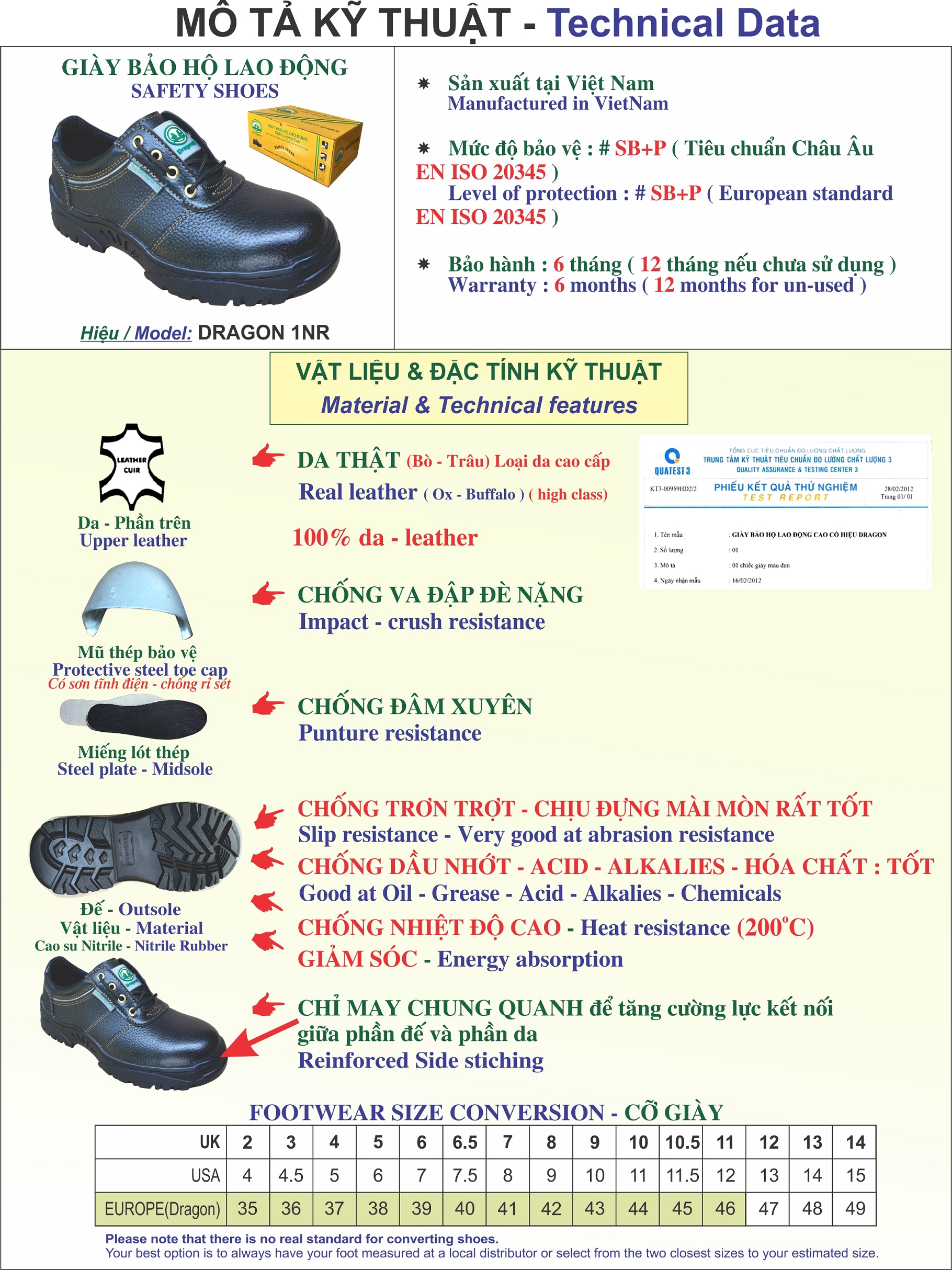 Thương hiệu giày Dragon của Việt Nam được dùng trong nhiều nhà máy, rất được ưa chuộng vì độ bền bỉ, đế cao su chắc chắn, chất liệu da thật